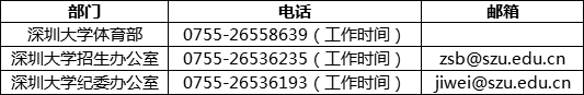 2.须在2021年2月15日前自行联系深圳大学体育部(联系人:谭老师,联系电话:13902950439),并于2021年2月1—15日登录“中国运动文化教育网”(www.ydyeducation.com/)或“体教联盟”手机APP中的“运动员保送系统”进行报名,并根据系统要求提交以下相关材料,逾期不予受理: