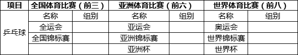 (1)超级组(单考单招类):凡参加过中国乒乓球俱乐部超级联赛、中国乒乓球俱乐部甲A联赛、全国乒乓球锦标赛(含预赛)、全运会(包括注册、报名)、全国青年锦标赛等赛事的考生可报名该组招生考试;