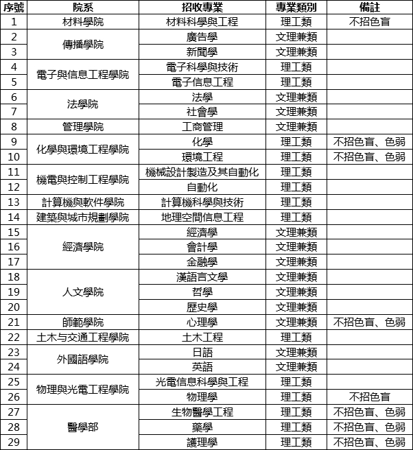 注:1.學校招收澳門保送生僅限於普通類專業,音樂類、美術類、體育類專業不在招生範圍;