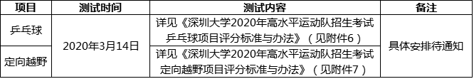 深圳大学2020年高水平运动员体育专项测试安排表