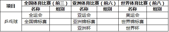 2020年保送录取运动员的竞赛项目及赛事表(乒乓球项目)