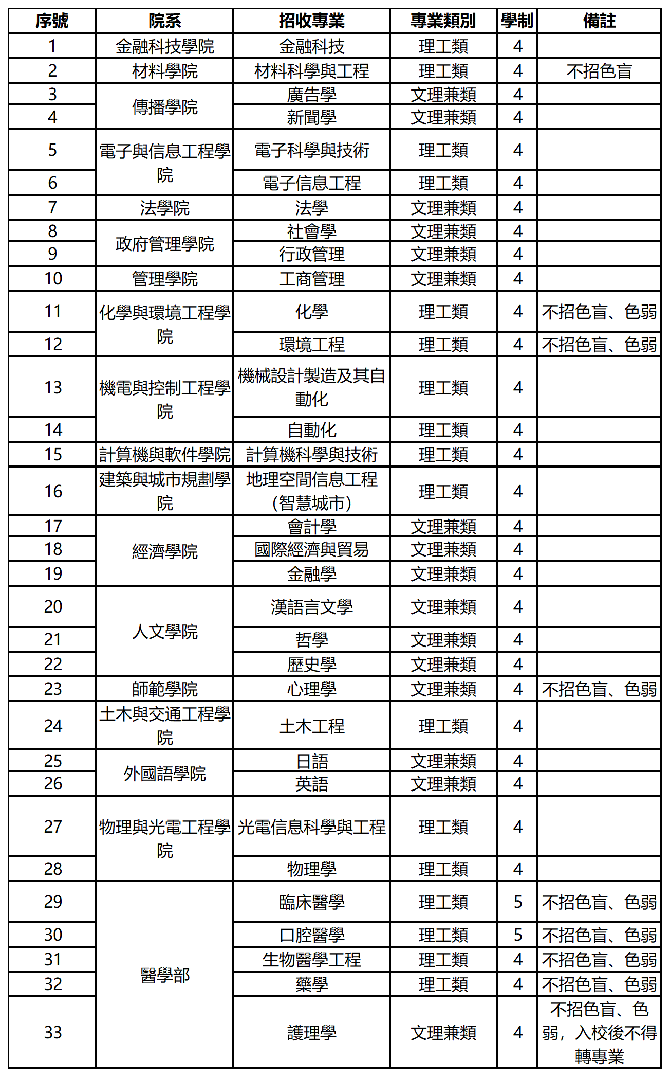 (三)新生入學後,由學校進行身體檢查,身體條件不符合要求的,取消入學資格;僅專業受限者,可以商轉其他專業。