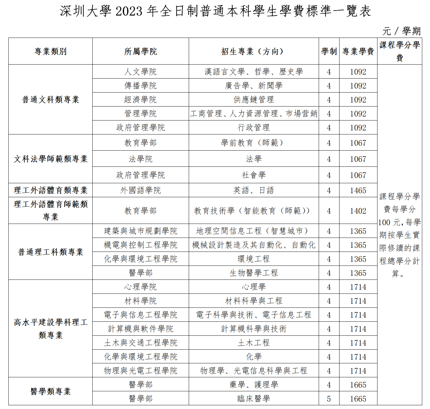以上收費和學生在校學習期間發生的其他費用均以深圳市物價部门最新核定批准數為准。