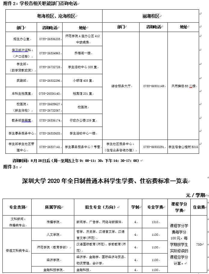 ●新生来校报到前,请按要求预存学费及住宿费,缴费标准详见附件3《深圳大学2020年全日制普通本科学生学费、住宿费标准一览表》;