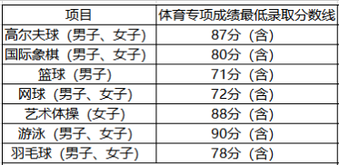 一、拟录取考生的体育专项考试成绩须达到合格(60分)及以上,在此基础上我校将依据招生项目的要求和组织运动队的需求等综合因素,分项目、分男女划定体育专项考试成绩最低录取控制线,具体如下: