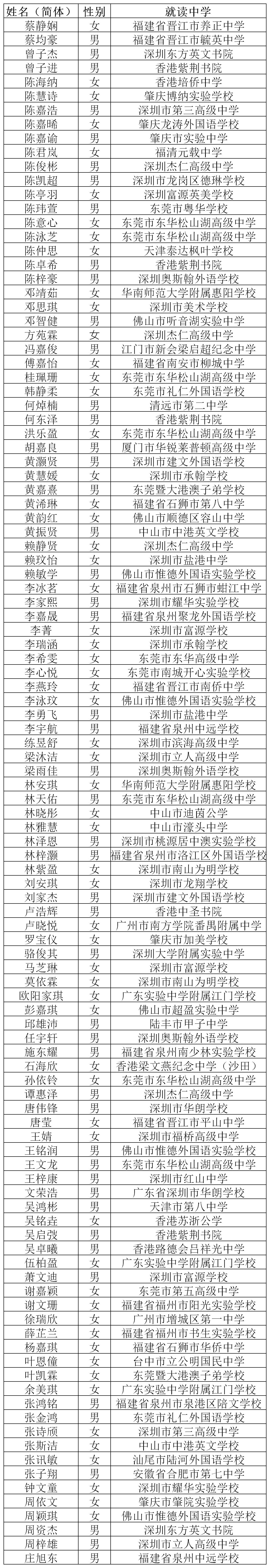 根据教育部有关文件精神及《深圳大学香港学院2024年自主招收香港学生简章》的要求,我校对第一批报名并完成现场确认的考生资格进行了初审。现将初审合格名单公示如下: