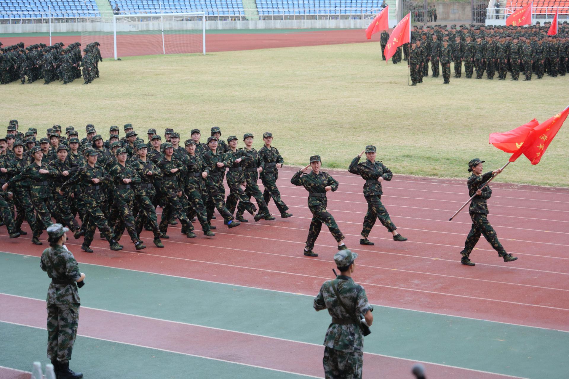 范志刚向承训部队赠送锦旗。武装部宣读表彰决定,范志刚、李永华为军训优秀教官、军训工作先进个人代表及军训优秀学员代表颁奖,并分别在两校区大会上讲话,向完成军训任务的新生表示祝贺,向承训部队和教官致敬致谢。