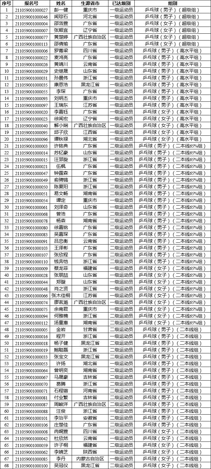 根据教育部有关文件和《深圳大学2021年高水平运动队及保送录取运动员招生简章》等规定,我校对2021年高水平运动队考生网上提交的报名材料进行了初审。现将考试资格初审合格名单公示如下: