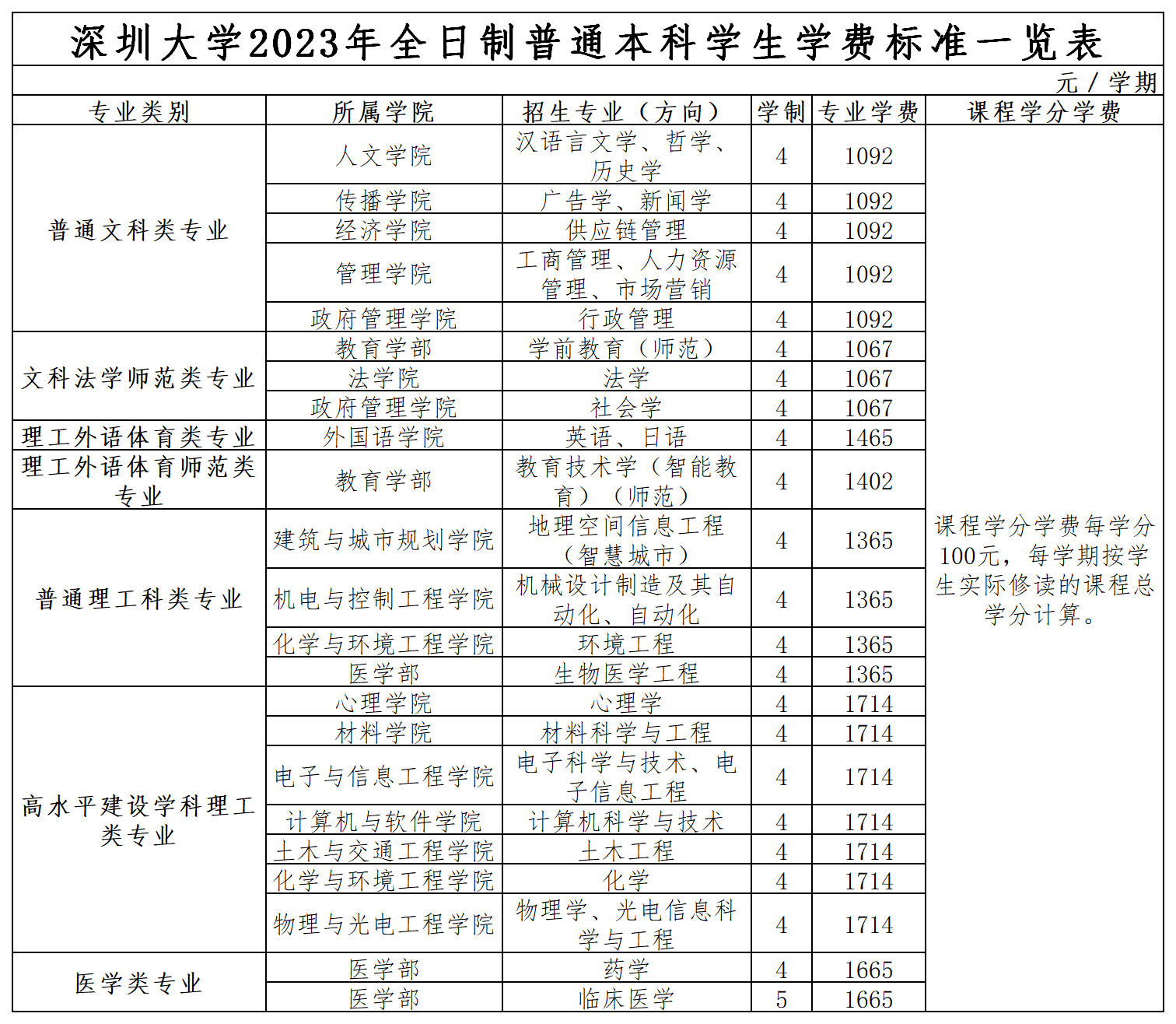 (一)学费(不含书费):按学分制收费,由课程学分学费和专业学费两部分组成,每学期学生缴纳学分学费按学生实际修读的课程总学分计算(课程学分学费的标准为每学分100元)。
