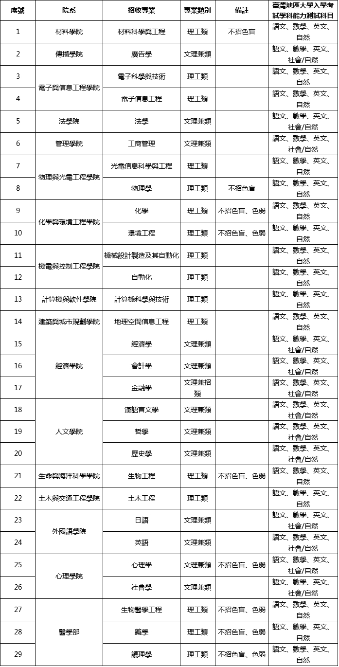 (一)招生專業詳見下表。專業介紹及專業受限請參閱“深圳大學全日制本科招生專業介紹”(https://zs.szu.edu.cn/page?m=yxzy&c=00060001);