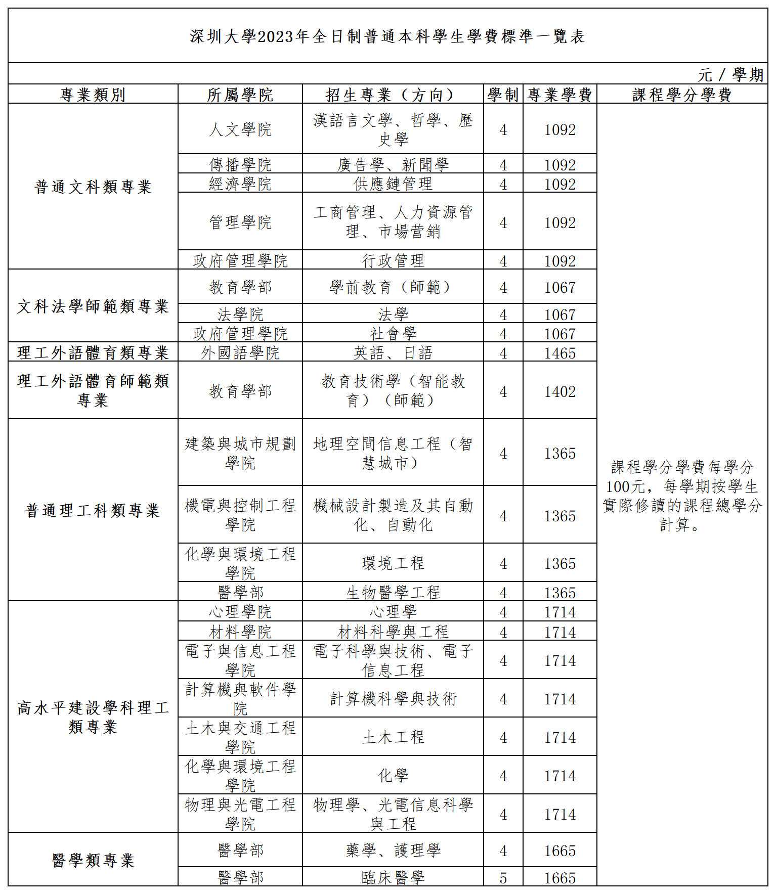 以上收費和學生在校學習期間發生的其他費用均以深圳市物價部門最新核定批准數為准。