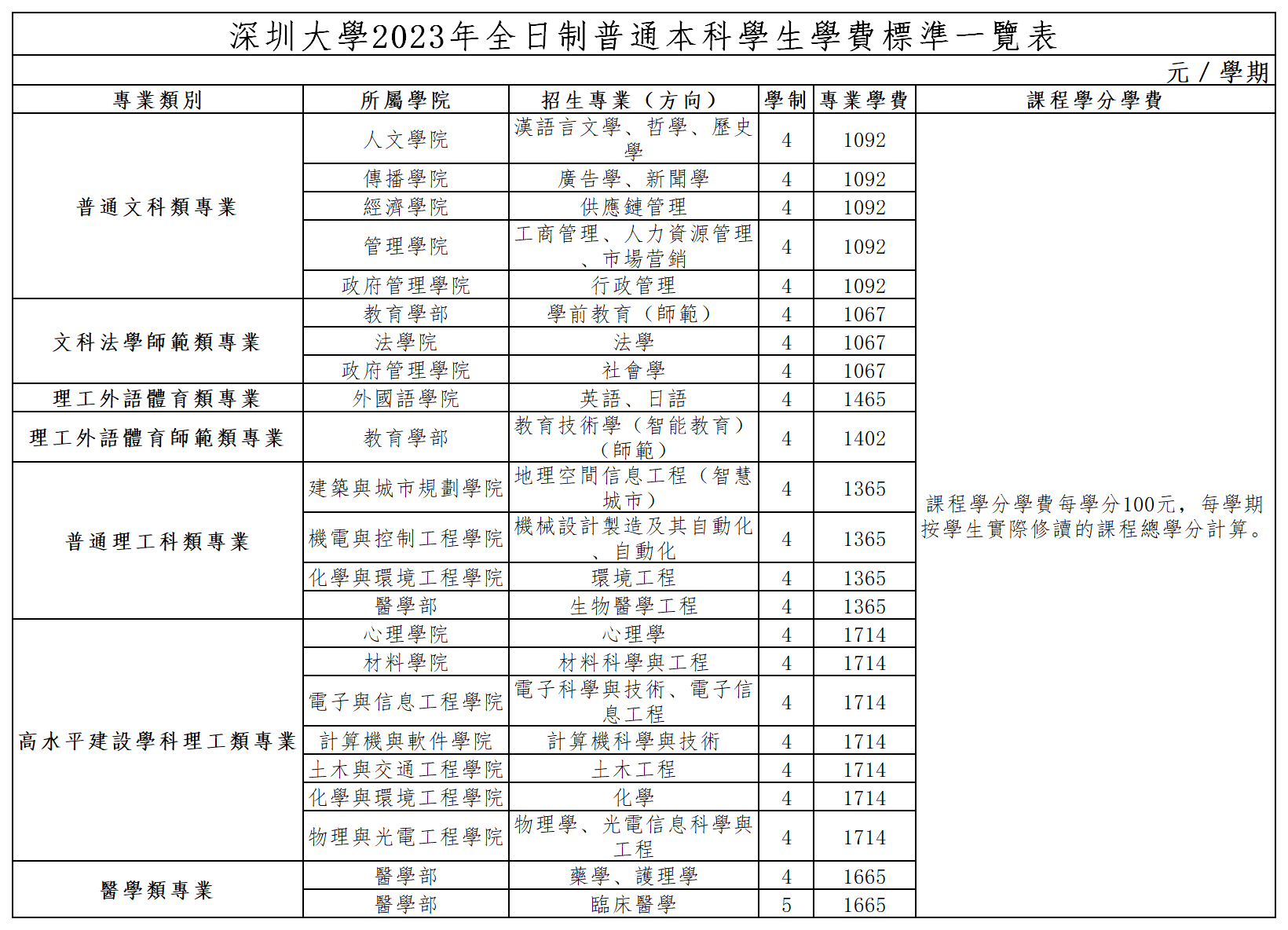 以上收費和學生在校學習期間發生的其他費用均以深圳市物價部門最新核定批准數為准。